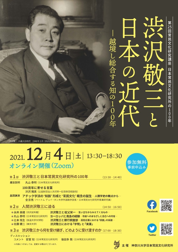 - Keizo Shibusawa and the Japanese Modern Era: 100 Years of Crossing Borders and Synthesizing Knowledge (25th Seminar, December 4, 2021)
