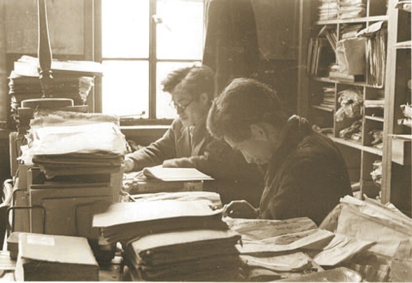 Organizing historical documents at the Institute for the Study of Japanese Folk Culture Tsukishima Branch Office (Early 1950s)
