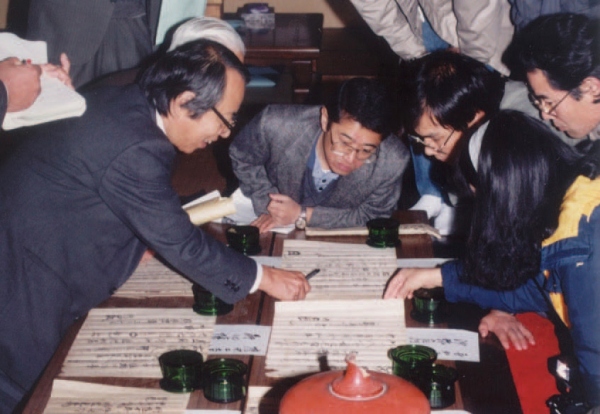 Looking over historical documents in Oku-Noto, Ishikawa Prefecture (1989)