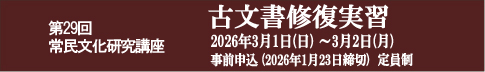 第29回常民文化研究講座「古文書修復実習」受講生募集 2026年3月1日(日)~3月2日(月) 事前申込(締切:2026年1月23日)定員制