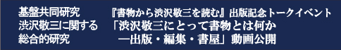 【動画公開】出版記念トークイベント『書物から渋沢敬三を読む』 書物学 第30巻 勉誠社 渋沢敬三にとって書物とは何か—編集・出版・書屋—「人はなぜ書物をつくり、書物を残すのか」(終了報告/2025年10月4日)