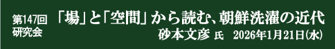 第147回研究会 「場」と「空間」から読む、朝鮮洗濯の近代 砂本文彦氏 2026年1月21日(水)開催のお知らせ