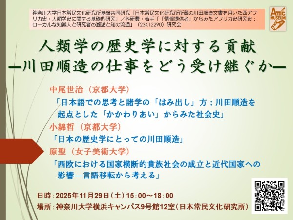 主催:基盤共同研究「日本常民文化研究所所蔵の川田順造文書を用いた西アフリカ史・人類学史に関する基礎的研究」