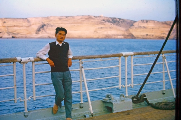 写真3 1962年、パリに向う客船の船上(「サイゴン(船上)」とマウントに手書き)
